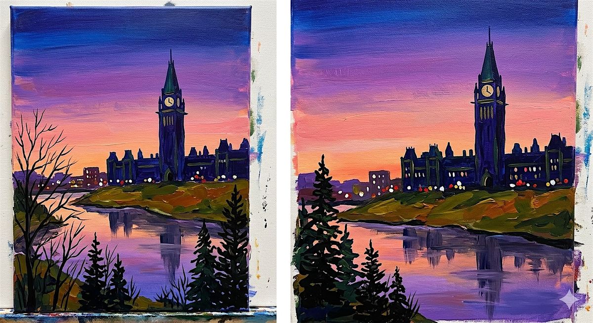 Join us for a relaxing and creative Friday night as we paint one of the most beautiful views in Canada. Whether you’re a total beginner or a seasoned pro, our local artist will guide you step-by-step through recreating this vibrant Sunset over Parliament Hill.From the glowing purple skies to the reflections on the Ottawa River, you'll learn simple techniques to make your canvas pop. No "fine art" experience required—just a desire to have fun!What’s included: