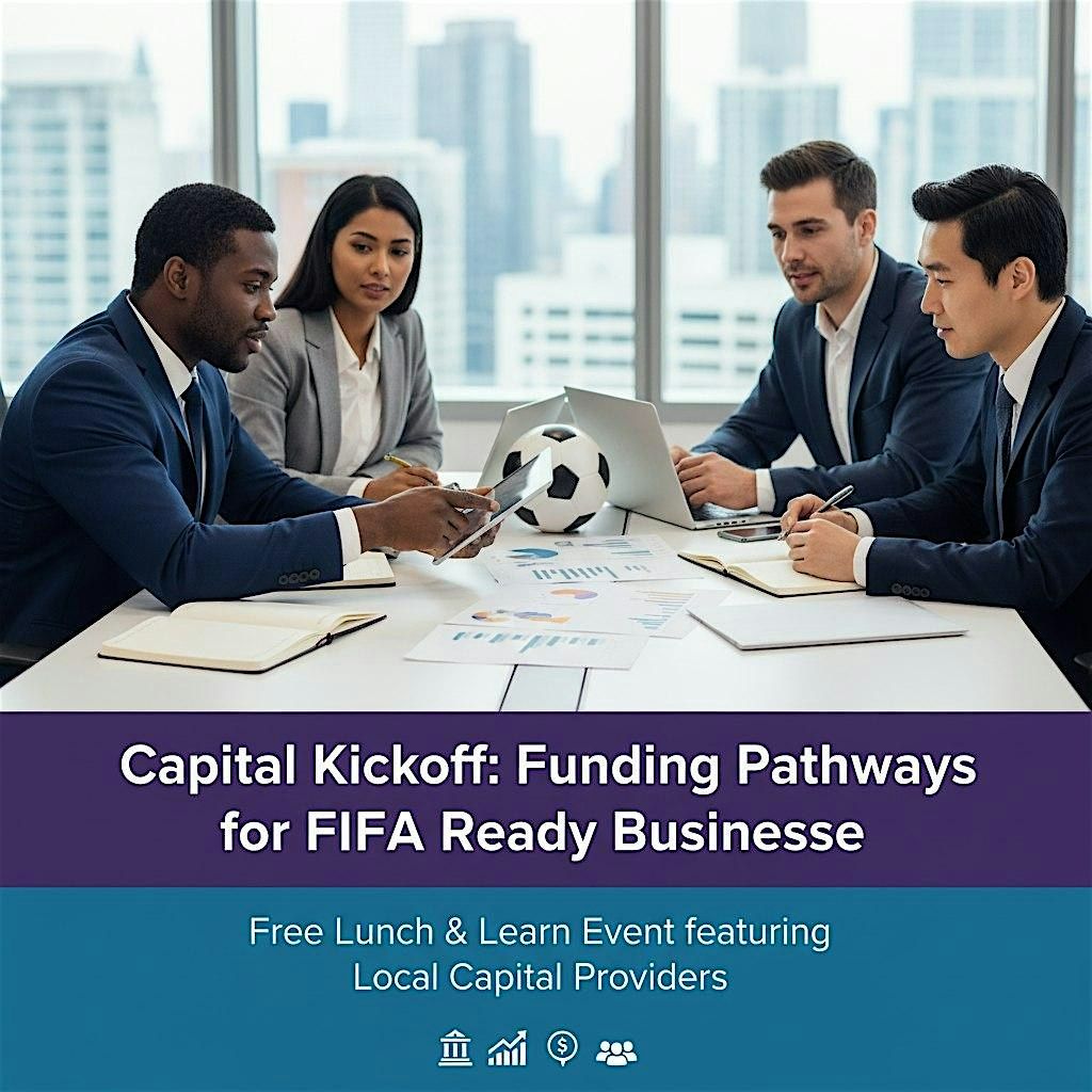 Capital Kickoff: Funding Pathways for FIFA-Ready Businesses is a 90-minute, in-person session that brings together lenders, capital providers, and ecosystem partners to help entrepreneurs understand how to prepare for funding opportunities tied to FIFA—and beyond.