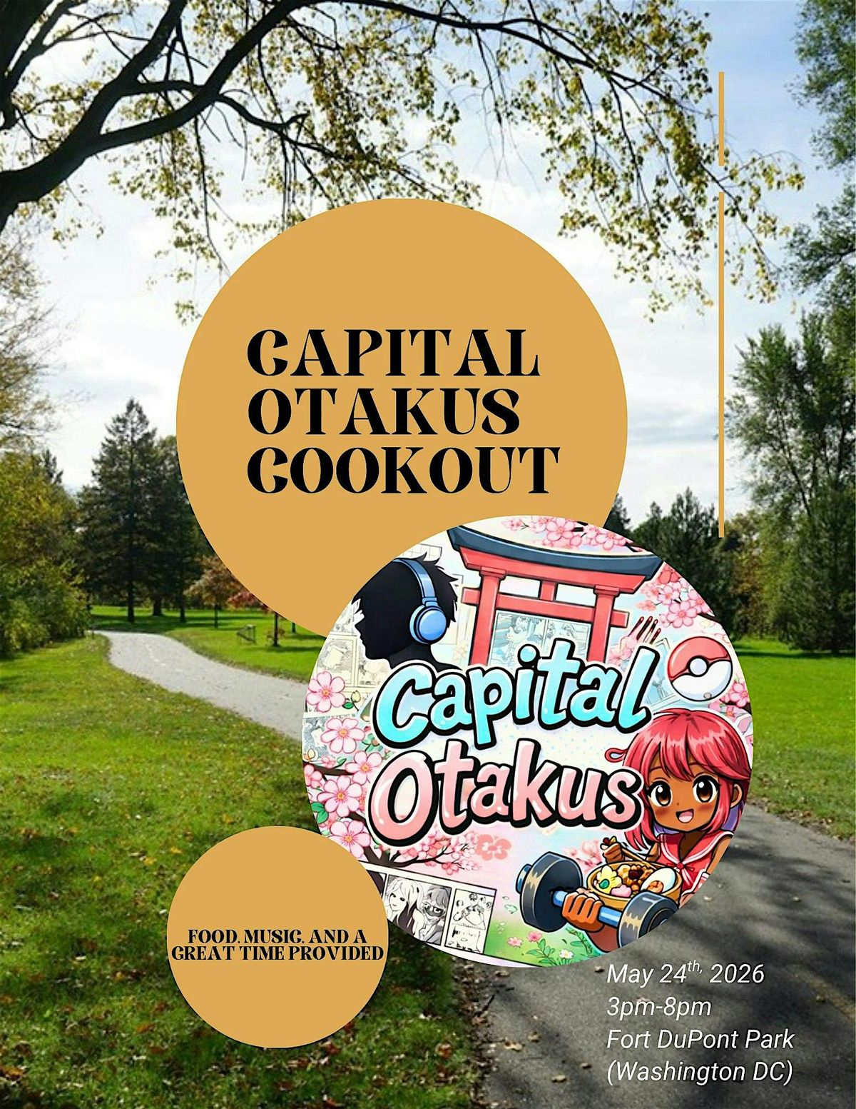 Come join us for the first annual Capital Otakus Cookout! Whether you’re an anime fan or just love amazing community, this is the place to be. Come out and mingle with a community of like-minded folks while enjoying amazing food, music, and tabletop games. A small donation is all it takes to be part of the fun. ($3 early bird, $5 for general).