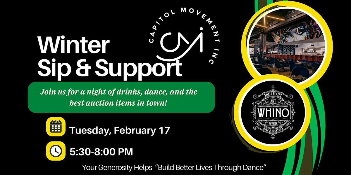 Join us on Tuesday, February 17, 2026 at WHINO for Capitol Movement's highly anticipated Annual Sip & Support Event! This in-person gathering promises an evening filled with fun, laughter, and a chance to support our incredible dance community.