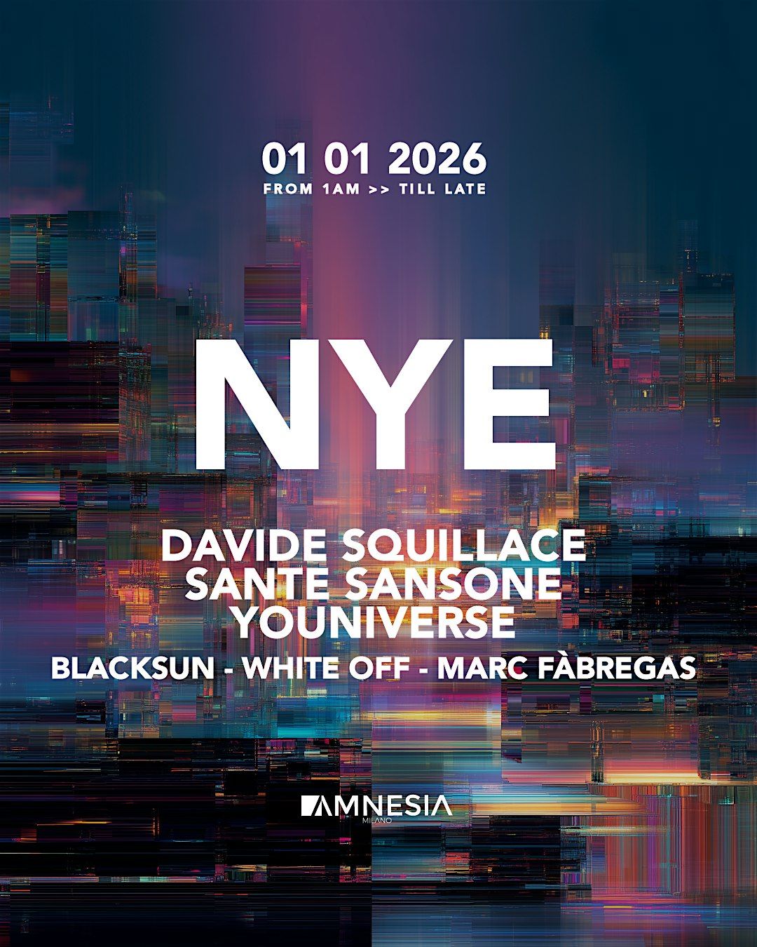 Dopo il conto alla rovescia, i brindisi e gli auguri di rito, sarà il momento di scegliere come iniziare davvero il 2026. E niente sarà meglio del Capodanno all’Amnesia Milano, la festa che parte quando in molti saranno già sulla via di casa. All’una in punto il club milanese, la sua musica e le sue luci saranno pronte ad accendersi, con una line-up formata da Davide Squillace, Sante Santone, Blacksun, YOUniverse, White Off e Marc Fabregas.