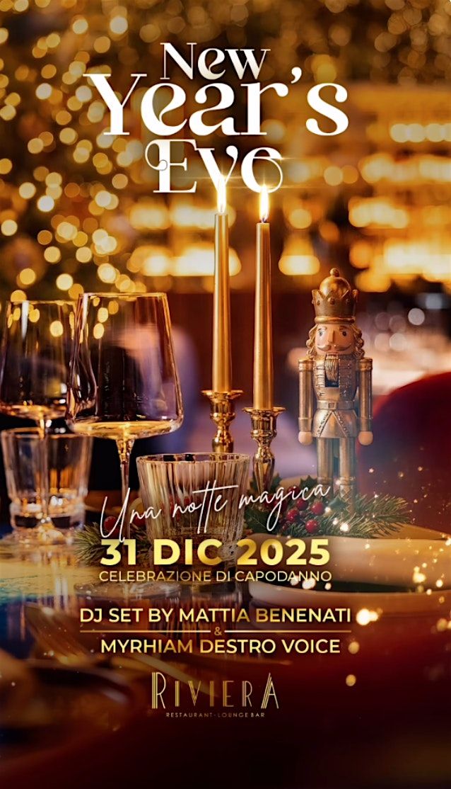 La notte più attesa dell’anno si avvicina! Riviera Milano ti aspetta per festeggiare il 2026 con emozioni, brindisi e sorprese che renderanno speciale ogni istante. Una serata pensata per farti vivere un Capodanno indimenticabile tra cenone, aperitivi e party fino a tarda notte.