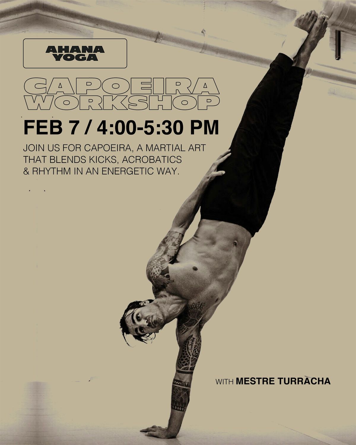 Join special guest Mestre Turracha for a powerful 90-minute session focused on foundational Capoeira movements, balance, and core-strengthening techniques. Whether you’re new to Capoeira or simply curious, this workshop is the perfect introduction.