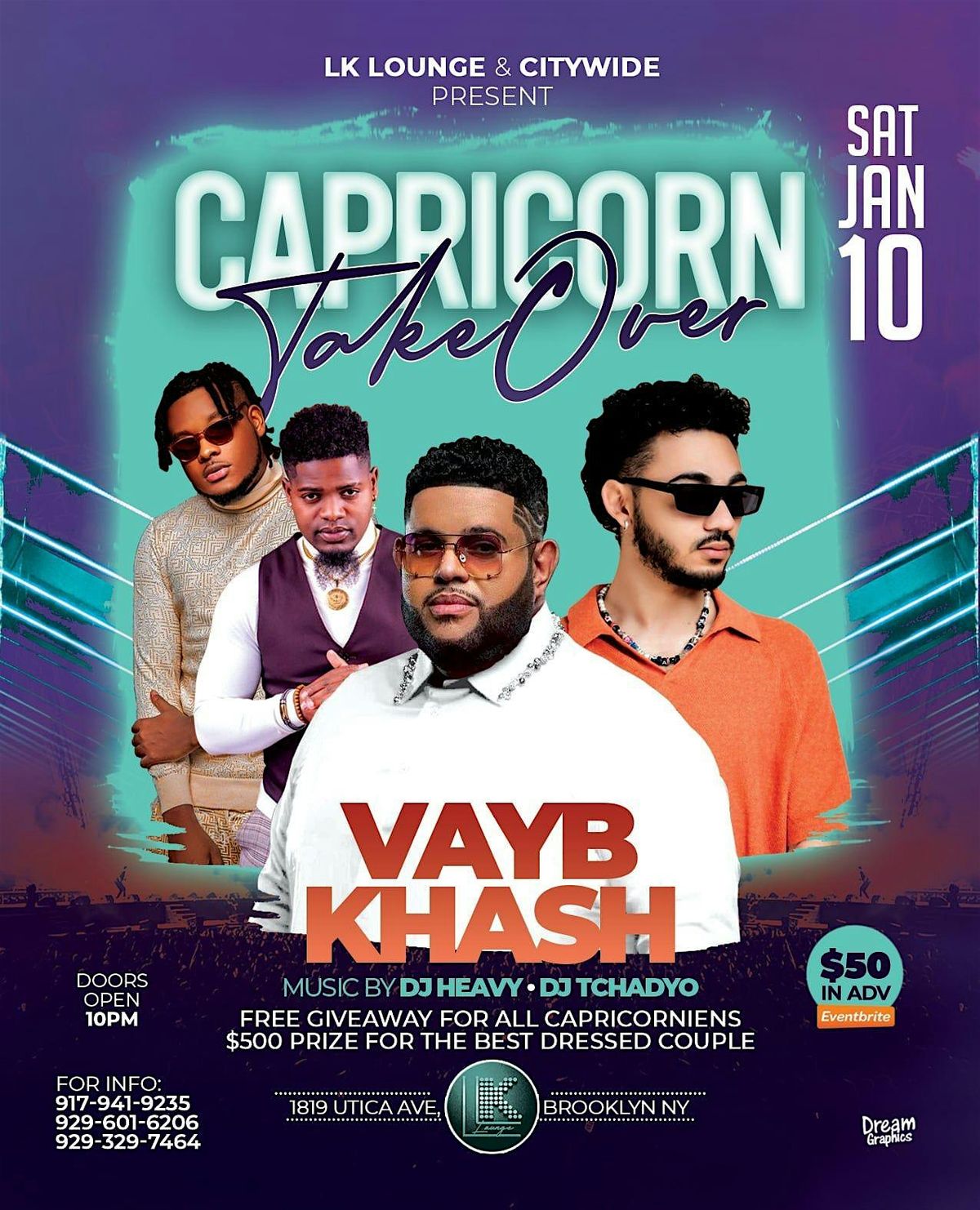 Get ready to dance all night with VAYB & KHASH at the CAPRICORN TAKEOVER - it's gonna be lit! NYC’s hottest DJs: DJ HEAVY & DJ TCHADYO