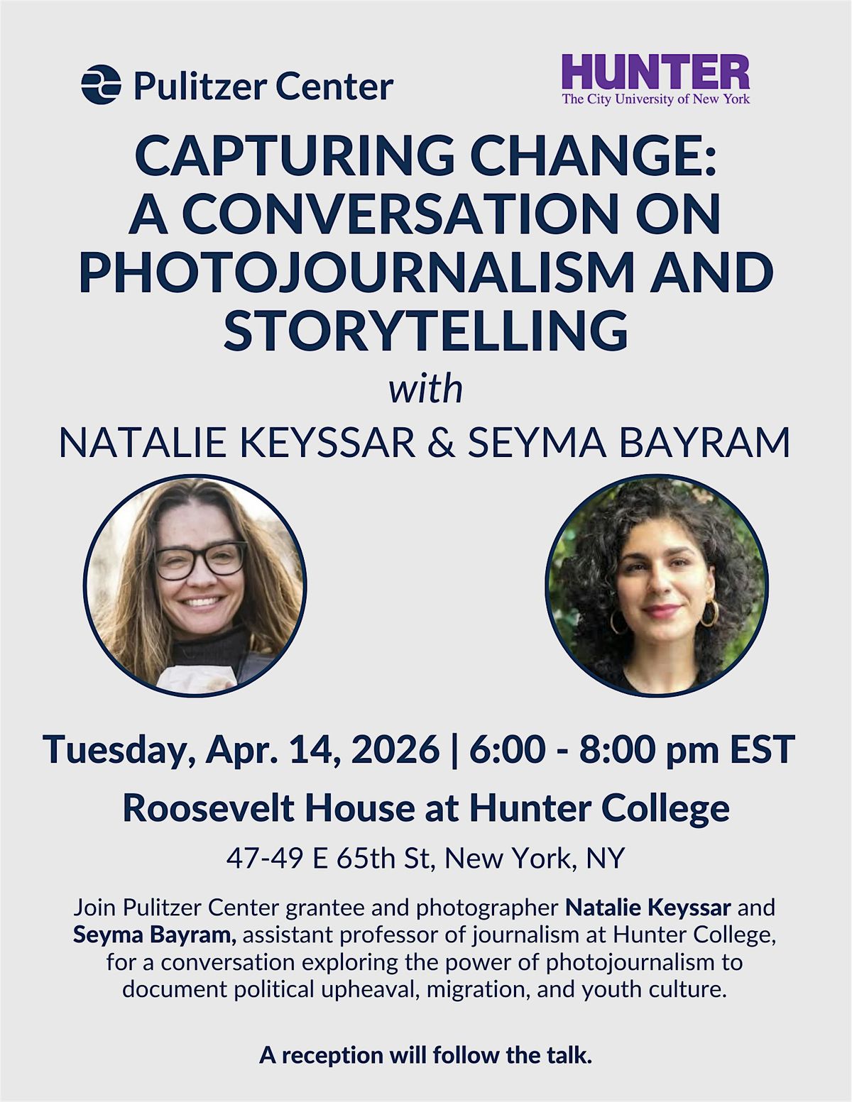 Join Pulitzer Center grantee and photographer Natalie Keyssar and Professor Seyma Bayram, a journalist and assistant professor of journalism at Hunter College, for a conversation exploring the power of photojournalism to document political upheaval, migration, and youth culture. Through her work, Keyssar captures the personal and often unseen impacts of conflict and social change across the globe.
