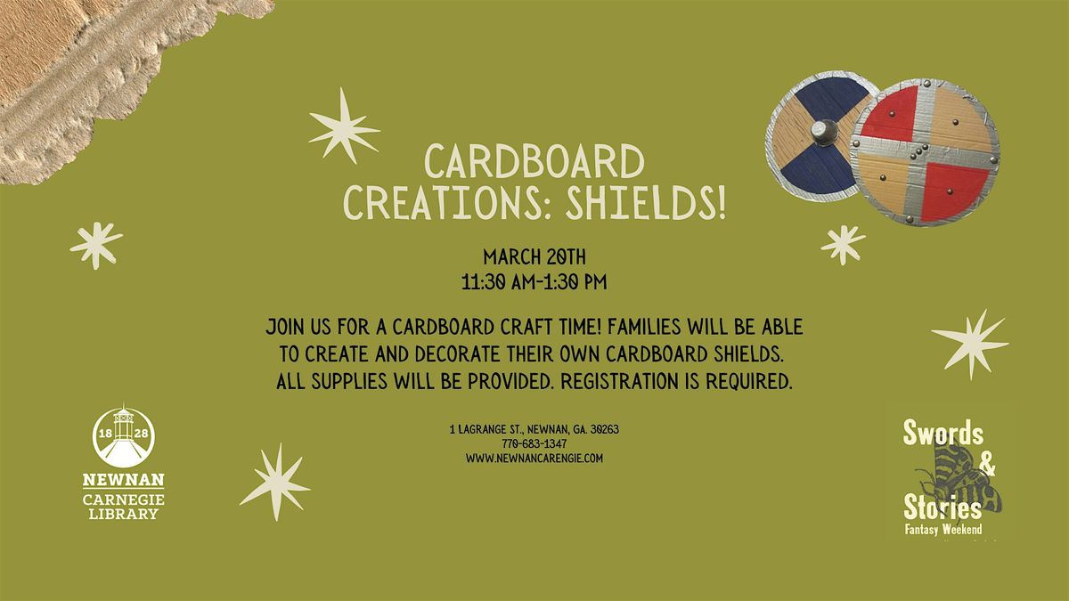 Join us For a cardboard craft time! Families will be able to create and decorate their own cardboard shields. All supplies will be provided. Registration is required.