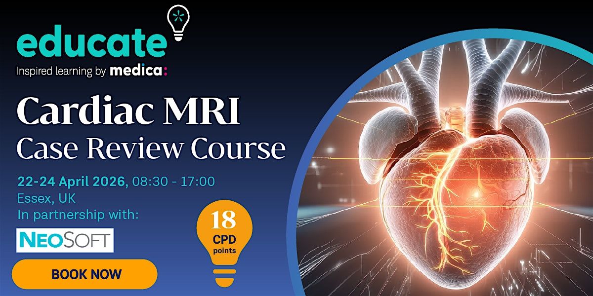 Join us in Essex for this three-day, hands-on Cardiac MRI Case Review course, delivered in partnership with NEOSoft, designed for radiologists and cardiologists who have completed Level 1 CMR training. This immersive course provides practical experience interpreting 75 real CMR cases across adult, paediatric, and congenital heart conditions. Over three days, you’ll refine reporting skills, review ischaemic heart disease, cardiomyopathies, congenital anomalies, valves, vascular disease, pericardial disease, and incidental findings.