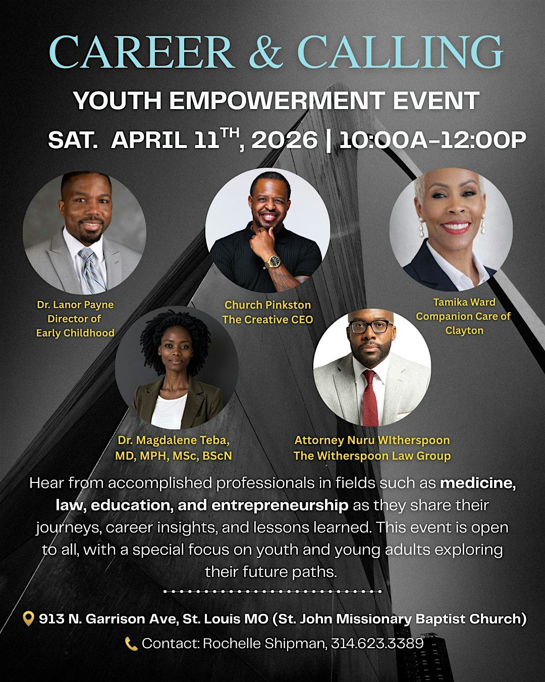 This dynamic gathering brings together influential leaders in law, medicine, education, and entrepreneurship. These are individuals who have built impactful careers, overcome real challenges, and are walking in purpose. These are the people your children should see, hear, and learn from.