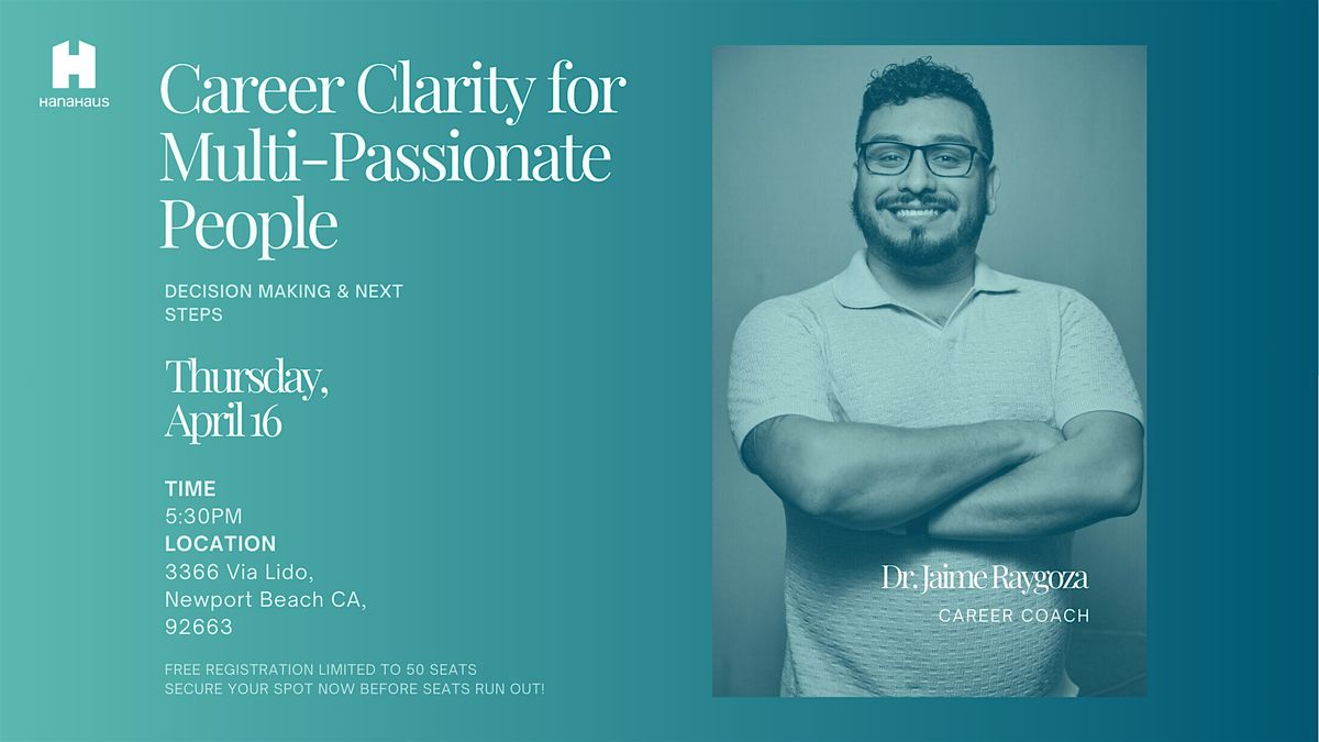 This interactive workshop is designed for people who have multiple interests (or are considering a pivot) and want a clearer way to choose a direction without feeling stuck or overwhelmed.