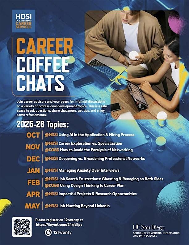 Career Coffee Chats are recurring conversations created via a collab between CogSci and HDSI. This month's topic is Job Hunting Beyond LinkedIn