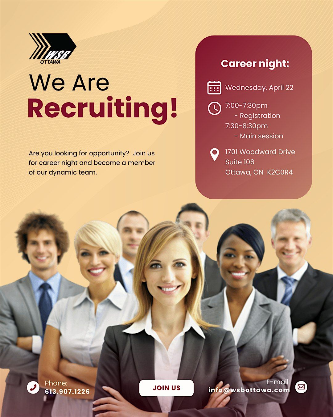 We are recruiting. Join us for a career night information session and become part of our dynamic team