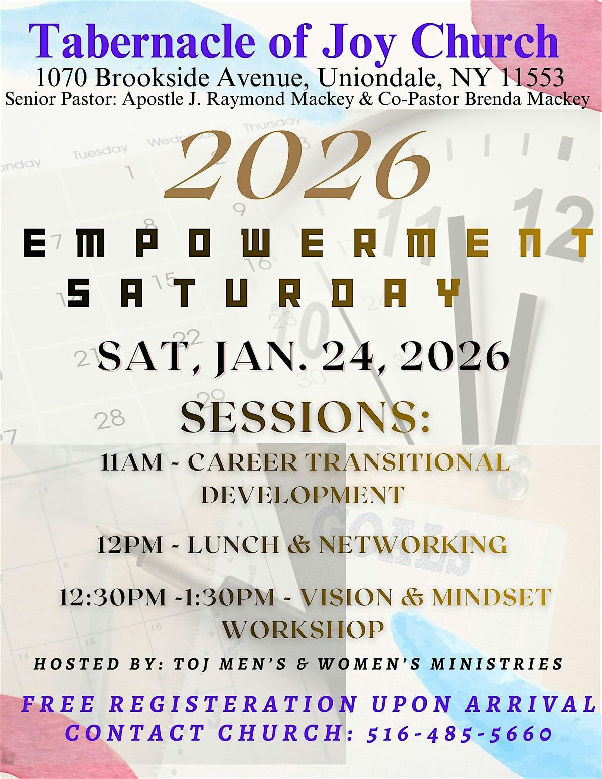 This event is hosted by the Tabernacle of Joy Church Men's & Women's Ministries. Come here from two dynamic facilators on how to level up your skills towards a new or current career path. Design your goals and projected outlook for 2026. All sessions include a biblical approach and are free of charge. Free will donations to church are accepted.
