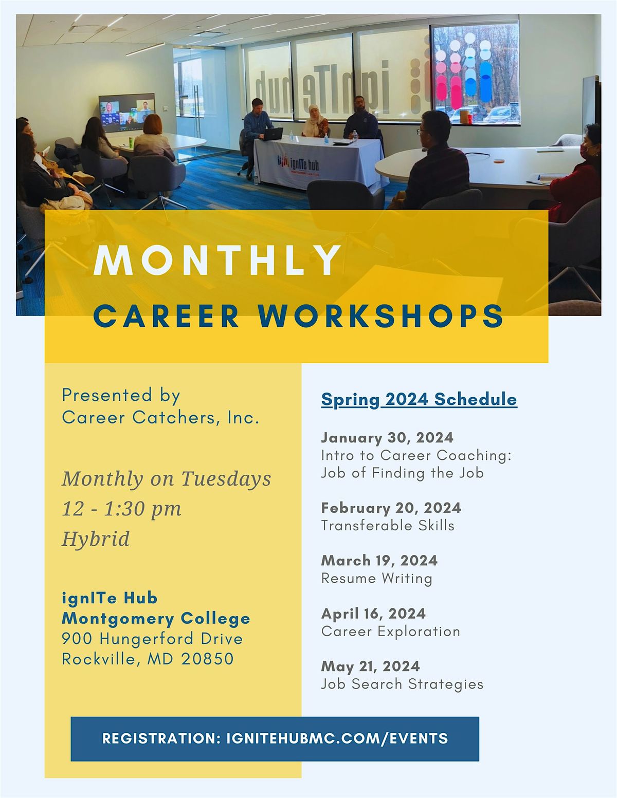 The ignITe Hub in partnership with Career Catchers, Inc. will provide individualized career coaching and monthly career workshops. Each month an in-person workshop will be presented with a different job readiness topic or skill. These services are free and open to the general public who are interested in pursuing a tech career.