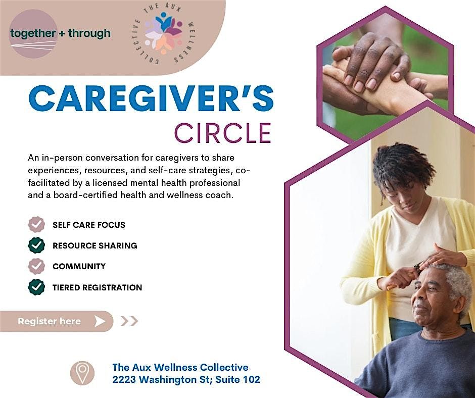 The Caregiver's Circle is an in-person conversation for anyone in a caregiving role to elders, partners, and young people, co-facilitated by a National Board Certified Health and Wellness Coach and a licensed mental health professional. We will focus on sharing experiences, resources, and help participants leave with strategies about caring for ourselves while caring for others.