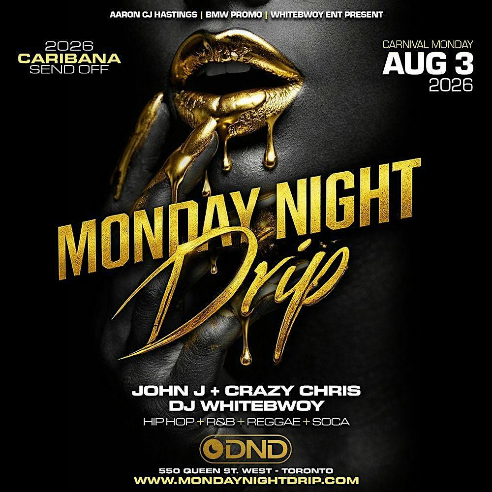 **Carnival Send Off: Monday Night Drip!**Join us for the ultimate Caribana send-off at DnD Nightclub! Experience an electrifying night filled with the best in Hip Hop, R&B, Reggae, and Trap music as we say goodbye to Caribana 2026.