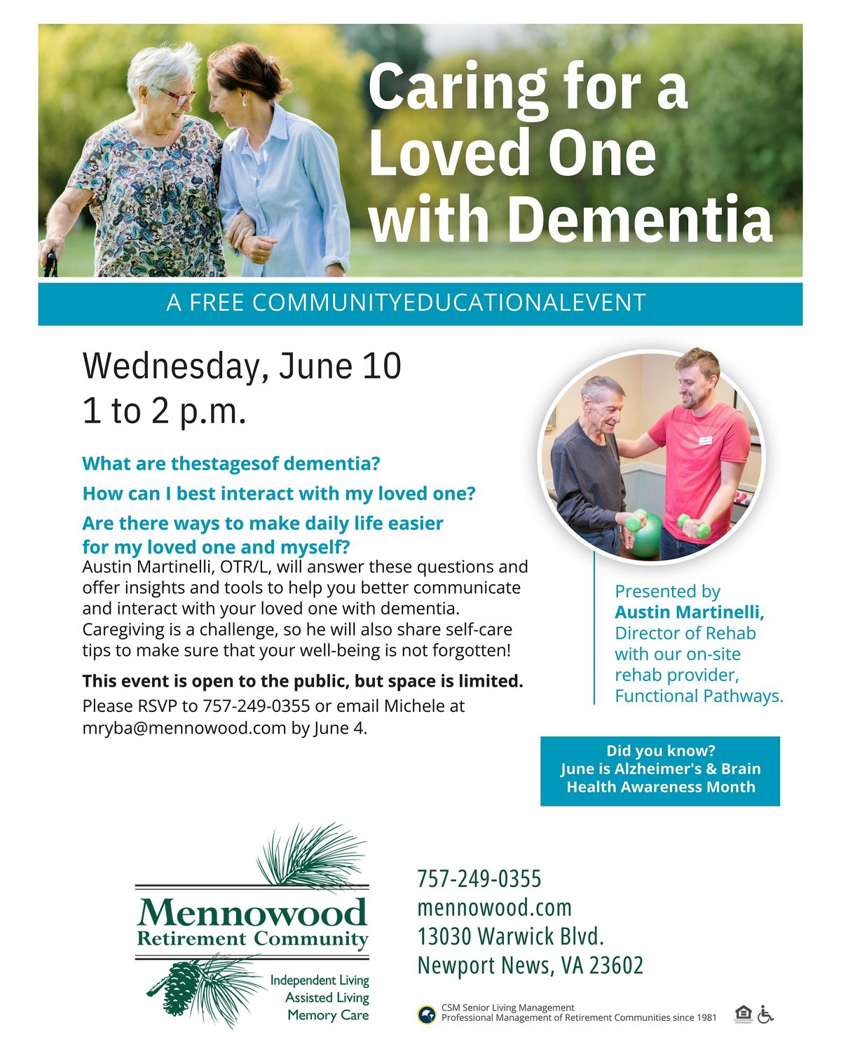 Austin will answer these questions and offer insight and tools to help you better communicate and interact with your loved ones w/ dementia