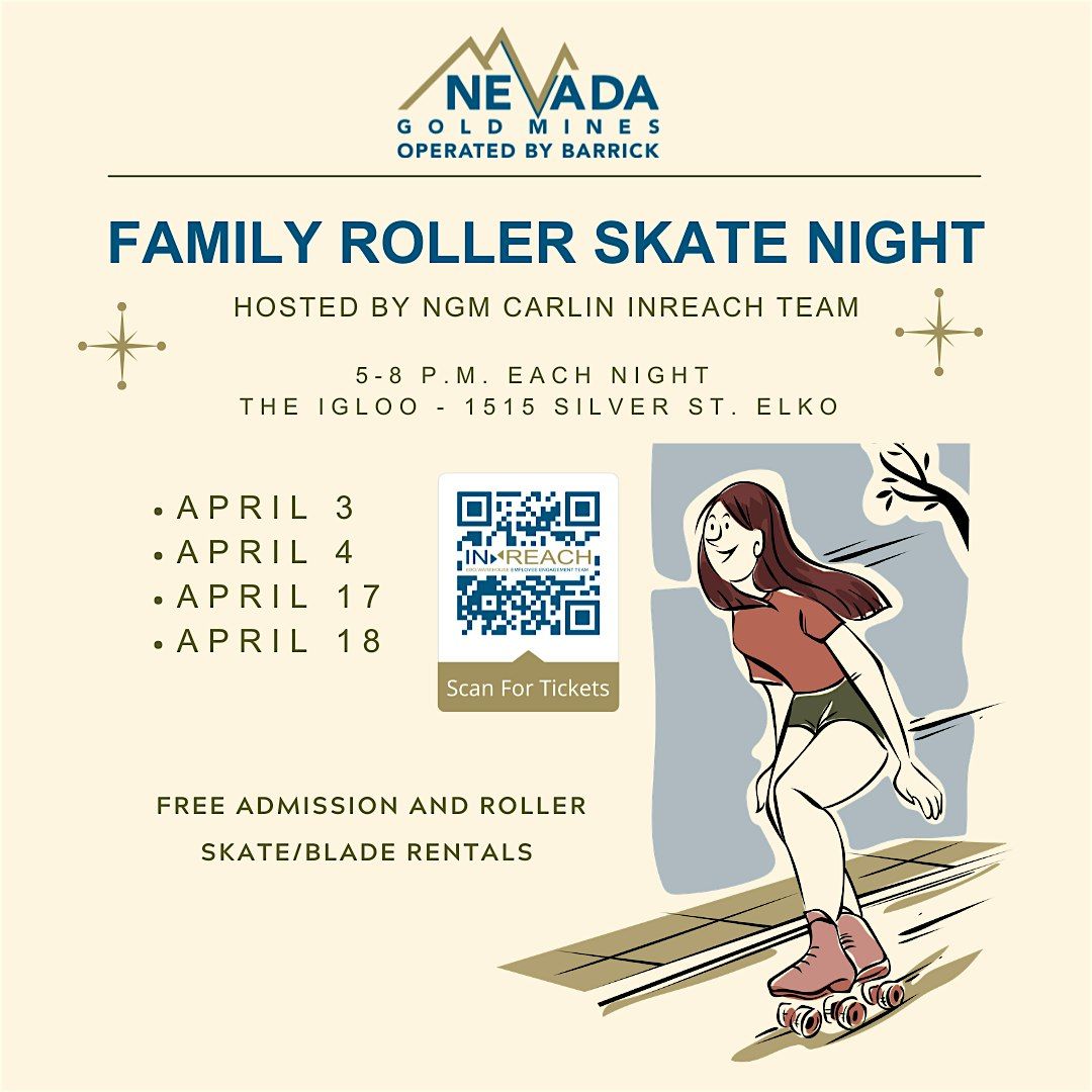 Join the Carlin InReach team and fellow employees and their families for Family Skate Nights this April. Tickets are free, and roller skates/roller blades will be provided. Concessions and food trucks will be onsite to purchase food.