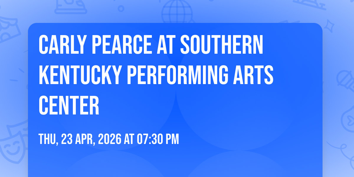 🌟 Be part of history at Carly Pearce at Southern Kentucky Performing Arts Center, an extraordinary gathering that will captivate your imagination! 🏛️ The prestigious Southern Kentucky Performing Arts Center in Bowling Green, KY sets the stage for an unforgettable experience on April 23rd, 2026 at 07:30 PM. ✨ They are bringing together the finest elements of entertainment and innovation to create moments that will take your breath away. From the moment you arrive, you'll be immersed in an atmosphere of wonder and excitement. 🎯 This carefully planned event ensures every guest experiences something truly special. 🎊 Early booking is recommended for this must-attend event of the season!