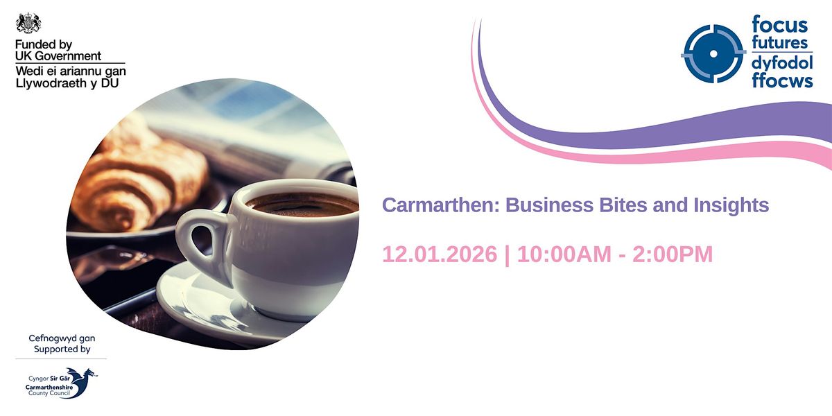 Business Bites and Insights is an informative event for new and existing businesses, bringing together local experts to share practical guidance across key business areas. Speakers include Bear HR, Lloyd & White (Llanelli) on business insurance, Wellfinite on workplace wellbeing, the Carmarthenshire County Council Business Support Team, and specialist speakers covering business finance.