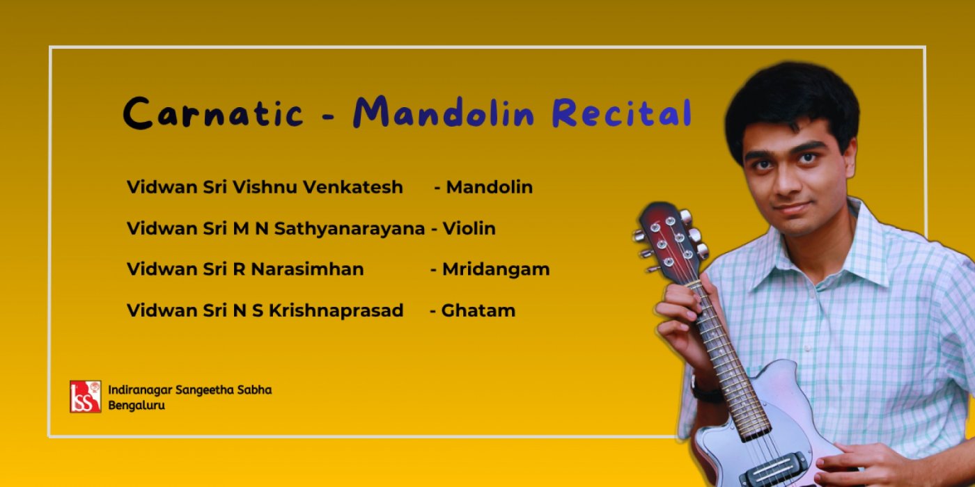 Indiranagar Sangeetha Sabha proudly presents an enchanting evening of Carnatic music featuring a mandolin recital by Vidwan Sri Vishnu Venkatesh, one of the most promising young instrumentalists in the Carnatic tradition. Known for his clarity, precision, and soulful manodharma, Vishnu brings a refreshing energy to this beloved instrument.