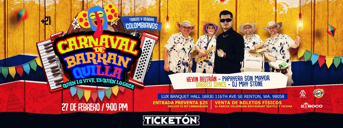 Don't miss CARNAVAL DE BARRANQUILLA happening at Lux Banquet Hall, Renton, WA, United States on 2026-02-27T21:00:00-08:00. A great evening with good music and a laid-back atmosphere awaits you. Invite your friends for a night out! **Event Details:** * **Location:** Lux Banquet Hall, Renton, WA, United States Register now to secure your spot at this landmark event. #CARNAVALDEBARRANQUILLA #event #exciting #RentonEvents #WAEvents