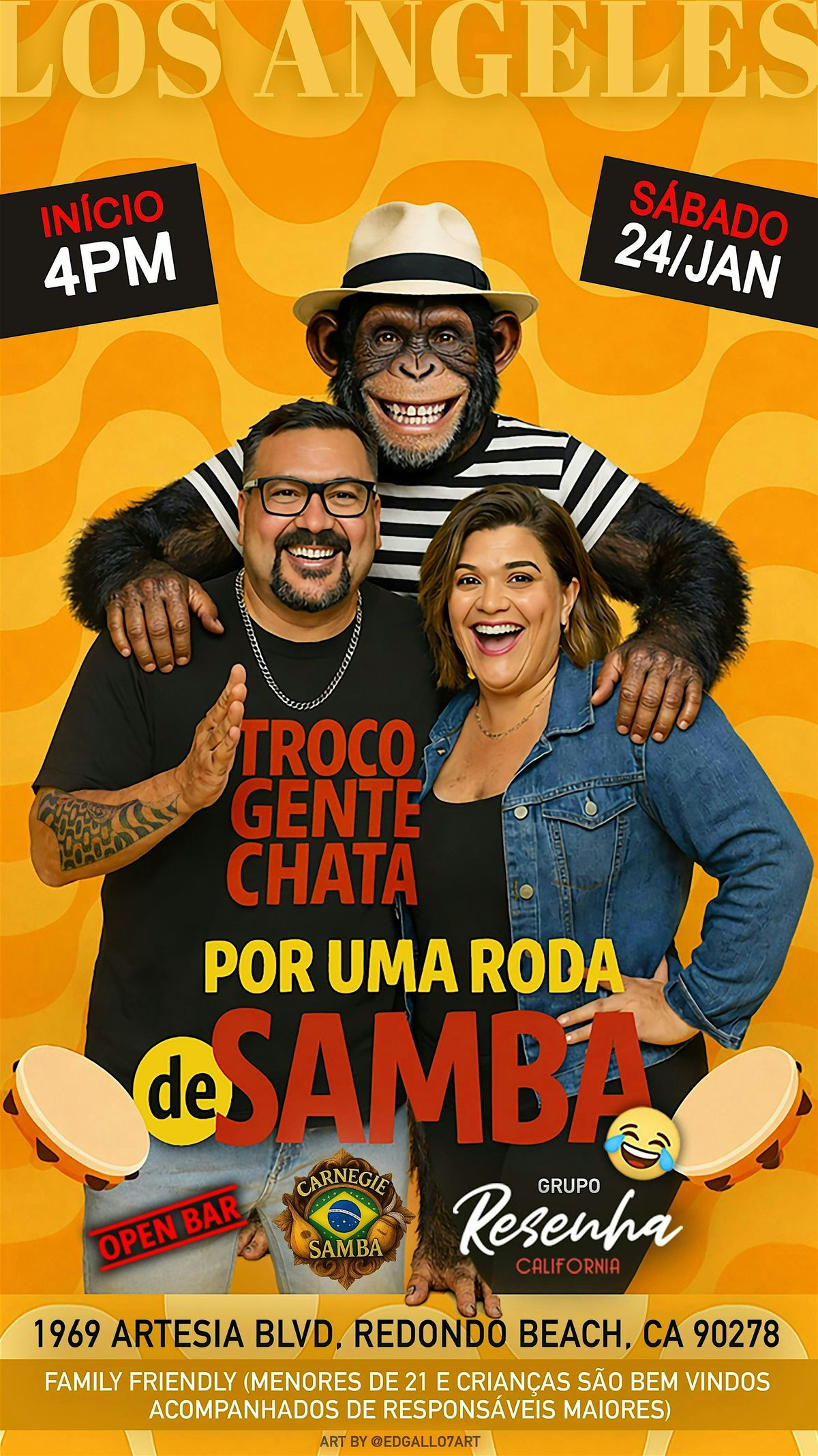 Samba ao vivo, trazendo clássicos e sucessos que todo brasileiro canta junto. Mais do que uma festa um encontro da comunidade brasileira.