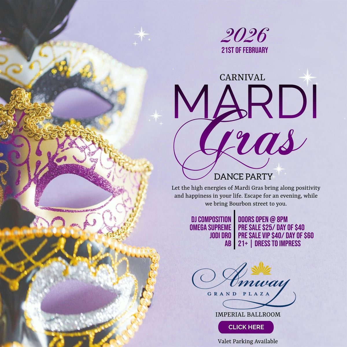 Mardi Gras returns to the Imperial Ballroom at the Amway Grand Plaza!Featuring DJ Composition, DJ Omega Supreme, DJ Jodi Dro & DJ AB.