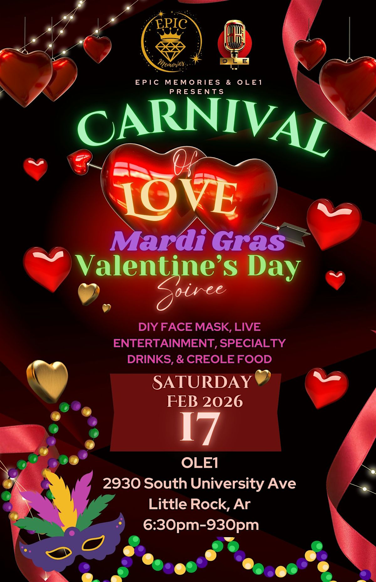 Get ready to dance the night away incognito at the Carnival of Love Valentine's Masquerade Soiree costume party!Agenda