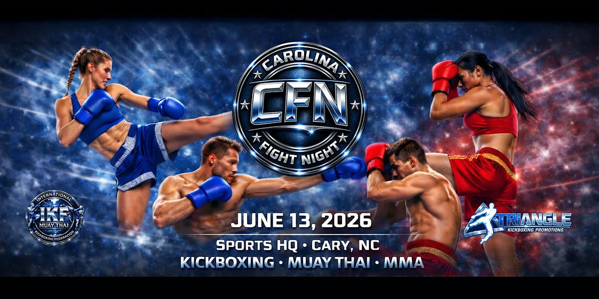 Carolina Fight Night is one of the most exciting upcoming Kickboxing and Muay Thai events in Cary, NC, bringing IKF-sanctioned action to Sports HQ on June 13, 2026.