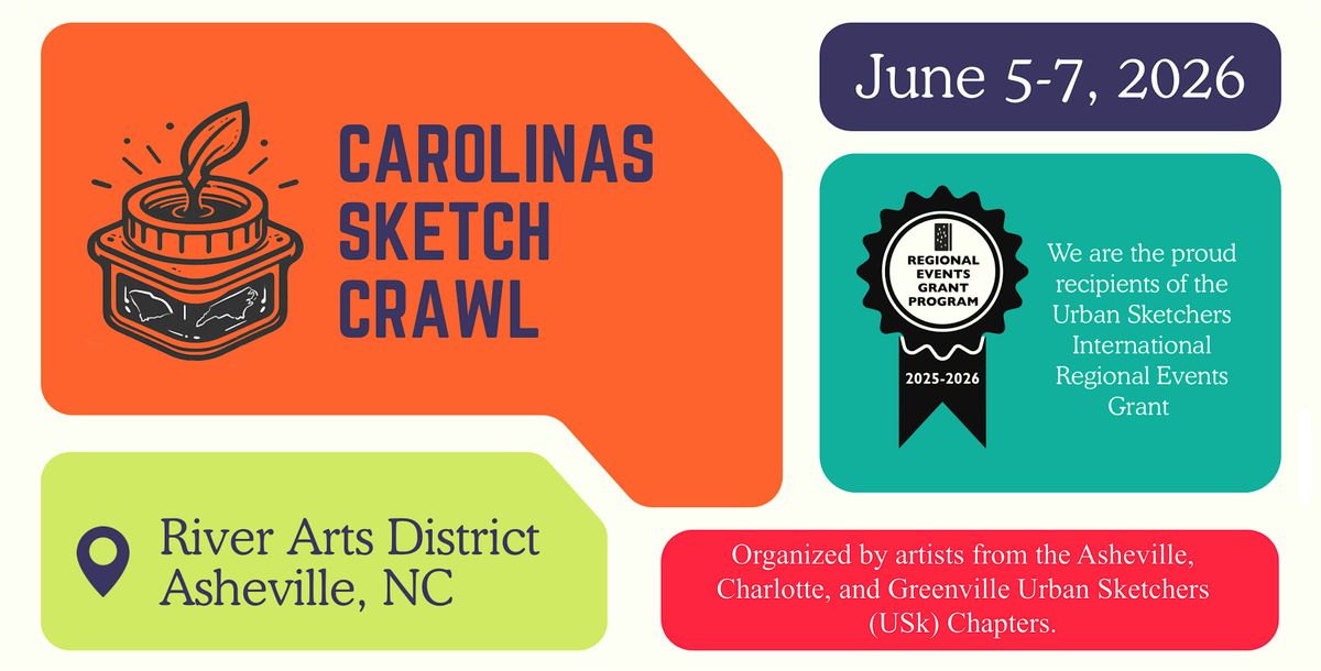 Organized by artists from the Urban Sketchers (USk) Asheville, Charlotte and Greenville chapters. We are the proud recipients of the Urban Sketchers International Regional Events Grant.