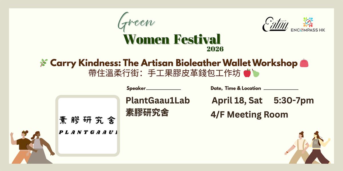 The workshop fee includes general admission to the Green Women Festival, granting access to talks, booths, and goodie bags. The workshop will be conducted bilingually. 工作坊費用包括參加綠色女性節的基本入場券,允許進入演講、展位和禮包。工作坊將以雙語進行。