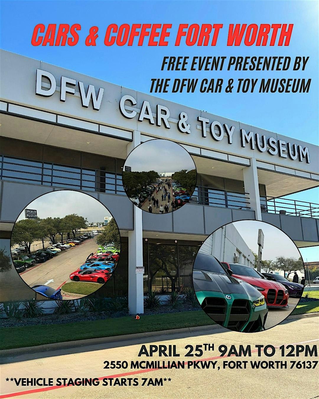 Cars & Coffee Fort Worth presented by the DFW Car & Toy Museum is happening April 25th, 2026, from 9AM–12PM! Everyone is welcome, but please reserve a spot if you plan to showcase your ride *spots are limited!*