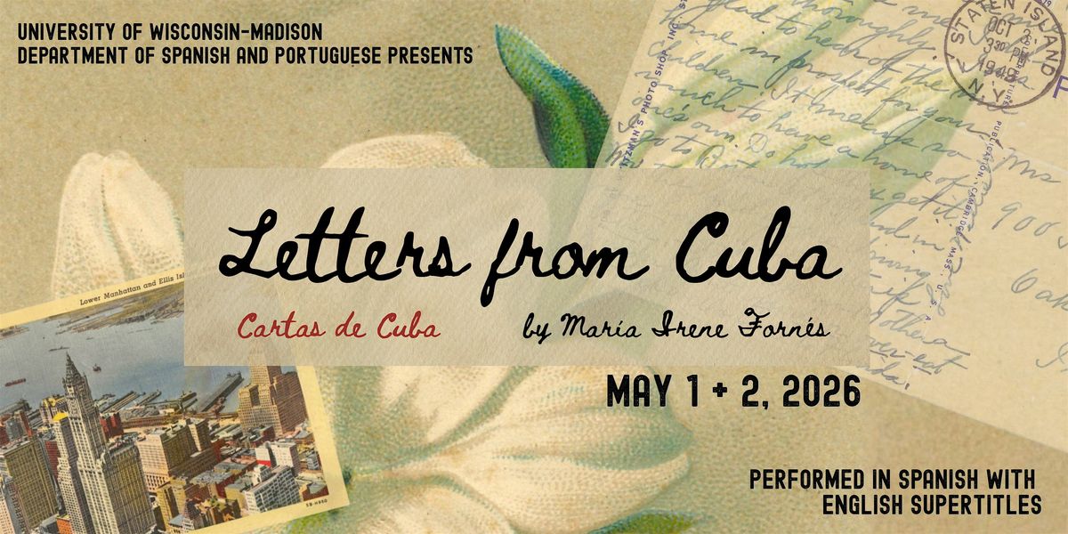 El Departamento de Español y Portugués y Teatro Décimo Piso de la Universidad de Wisconsin-Madison tienen el placer de anunciar la puesta en escena de la obra, Cartas de Cuba, de María Irene Fornés, dirigida por Paola S. Hernández y Sabina Madrid-Malloy.