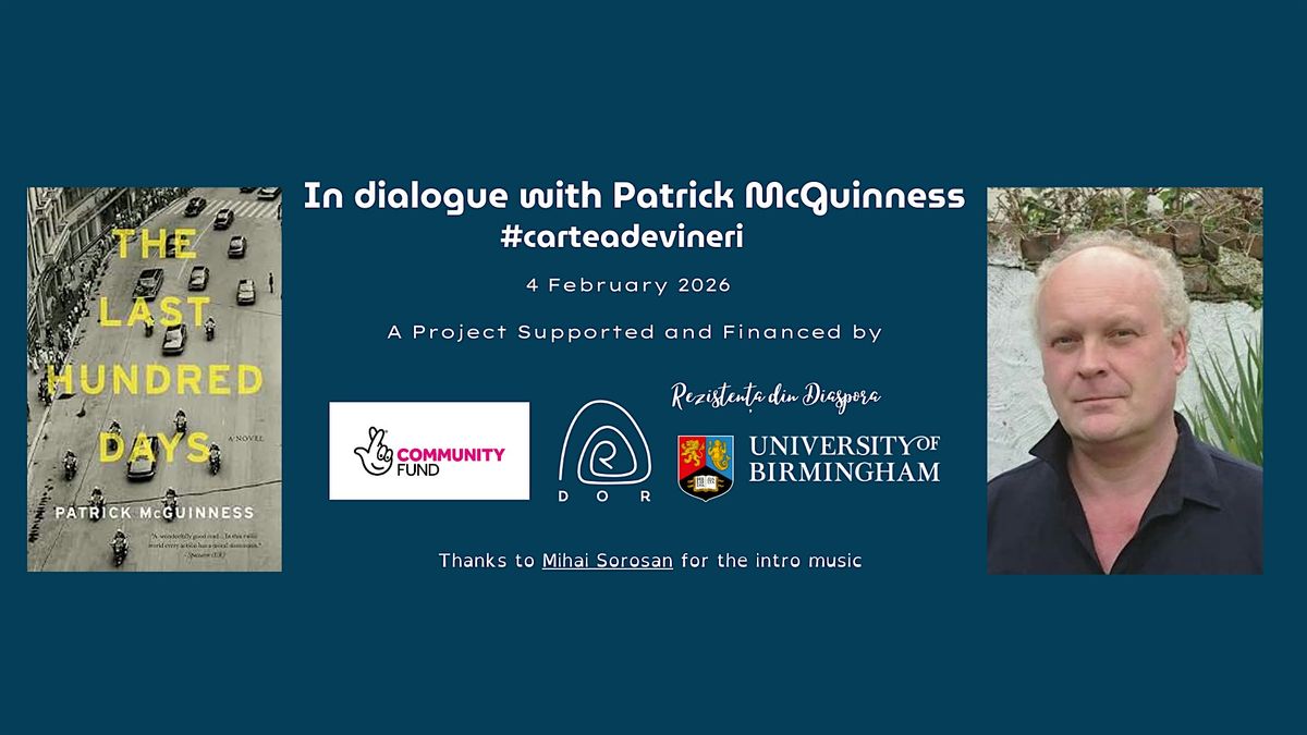 Join us for an inspiring afternoon at the BMI featuring an in-conversation event with acclaimed author and professor Patrick McGuinness, exploring his novel The Last 100 Days : a powerful reflection on memory, history, and the end of an era.