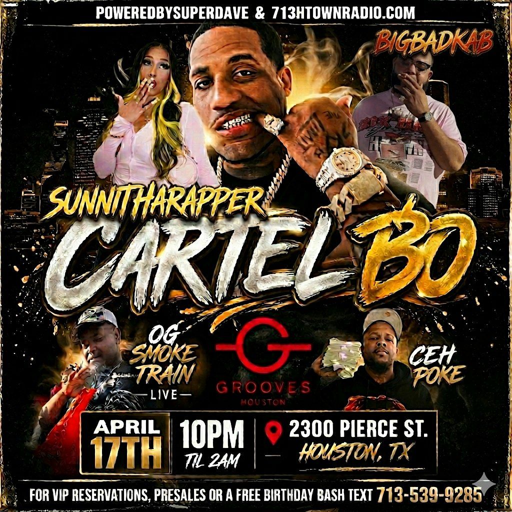 Get ready to vibe all night with CARTEL BO, SUNNITHARAPPER, BIGBADKAB, and OG SMOKETRAIN dropping fire beats! This Friday night !