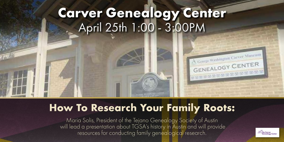 The presentation, led by President Maria Solis will include a history of the organization, Tejano Genealogy Society of Austin, its objectives and accomplishments. The presentation will continue with a short lesson on how to do family genealogical research. A few members will be available for any attendee that wants or needs help.