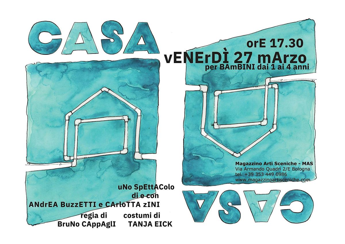 CASA è uno spettacolo dedicato alle bambine e ai bambini da 1 a 4 anni, una storia surreale e poetica che racconta l’incontro tra una persona grande e una persona piccola. I loro ruoli a volte si scambiano, tra stupore ed emozione, mentre insieme iniziano a costruire: prima un gioco, poi una storia, infine una struttura, un tetto, una casa.
