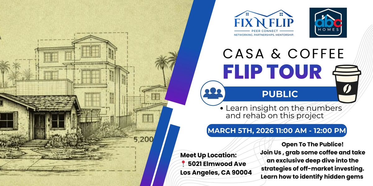 Join us, have some coffee and tour this property flip with us while diving into an in-depth walkthrough of a real off-market investment opportunity hosted in collaboration with Hector Garibay of ABC Homes and Christina Arredondo of Fix N Flip Peer Connect. This event is designed to give attendees a transparent, behind-the-scenes look at how an off-market property is identified, analyzed, renovated, and positioned for profit. Over coffee and conversation, we will walk the property together and break down the acquisition strategy, purchase numbers, renovation scope, projected ARV, timeline, and overall exit plan. Attendees will have the opportunity to ask questions in real time and gain practical insight into the decision-making process that goes into executing a successful flip. Whether you are an active investor or exploring your first deal, this tour offers a practical, educational experience in a collaborative and interactive setting.