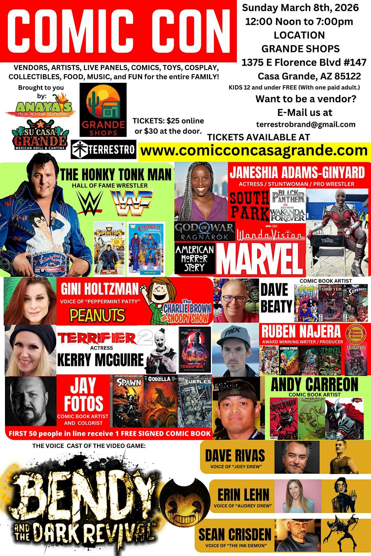 Get ready for the ultimate in-person celebration at CASA GRANDE COMIC CON! Dive into a world of comics, cosplay, and epic fun with fellow fans. Whether you're a seasoned collector or just starting out, this event is packed with amazing experiences you won't want to miss. Come hang out, meet artists, join panels, and geek out in style. It's the place to be for all things pop culture and comics!
