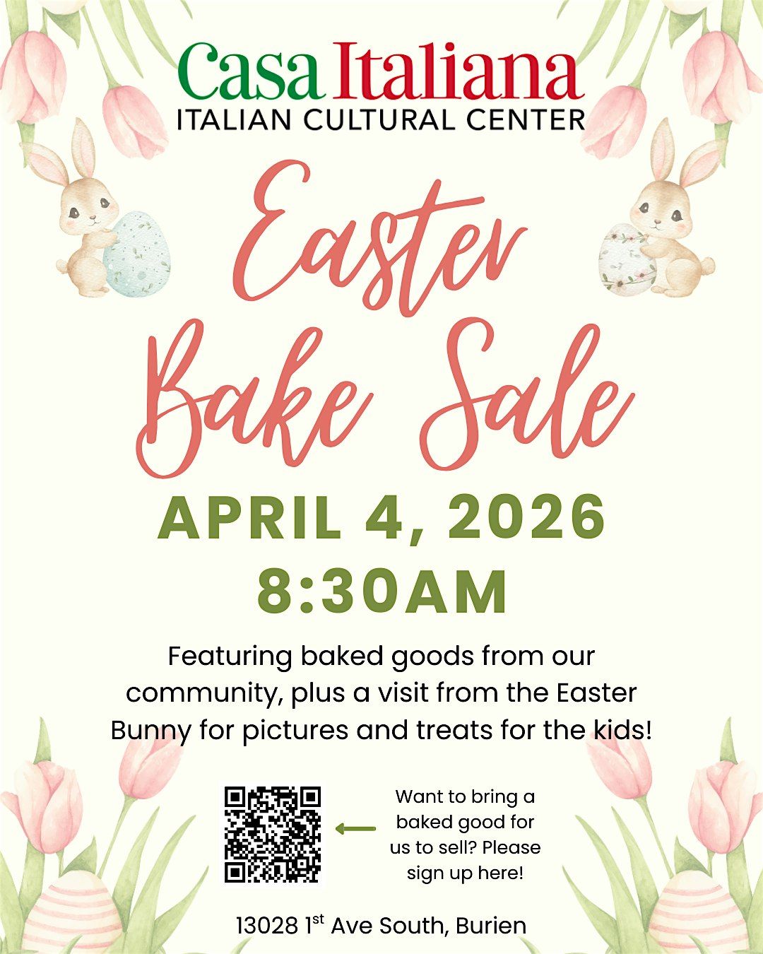 Join us April 4th at 8:30am for an Easter Bake Sale and stock up on delicious Italian treats!