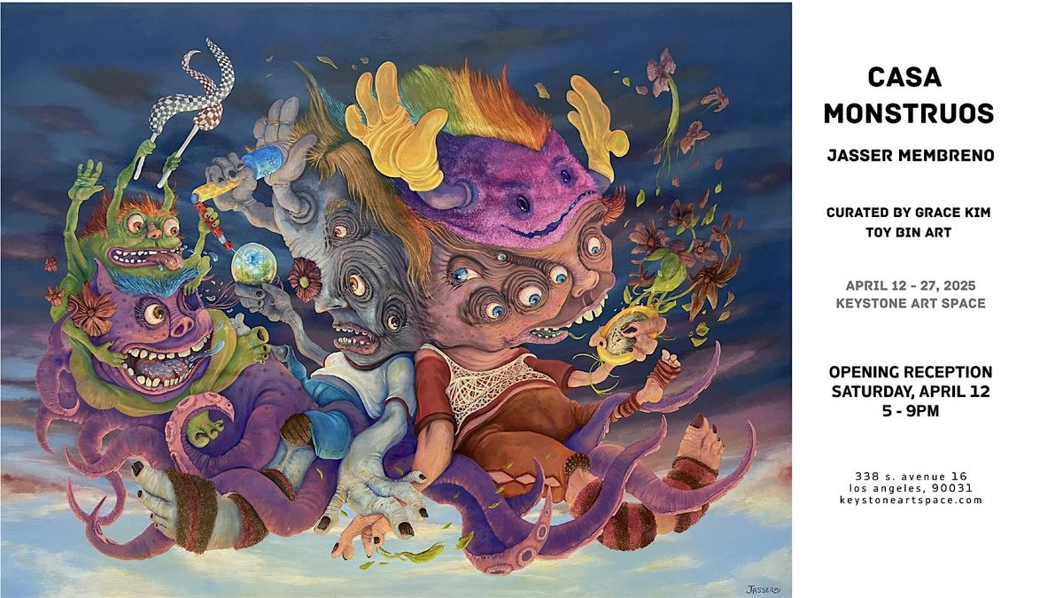 Keystone Art Space, in collaboration with Toy Bin Art curator Grace Kim, is pleased to presentCasa Monstruos, a solo exhibition by Los Angeles based artist and designer Jasser Membreno. This exhibition, running from April 12 to April 27, 2025, invites audiences into Membreno’sintricate world of monsters, whimsical yet deeply introspective figures that embody interdependence, blurring the lines between fantasy and reality. The opening reception will take place on April 12 from 5:00 to 9:00 PM.