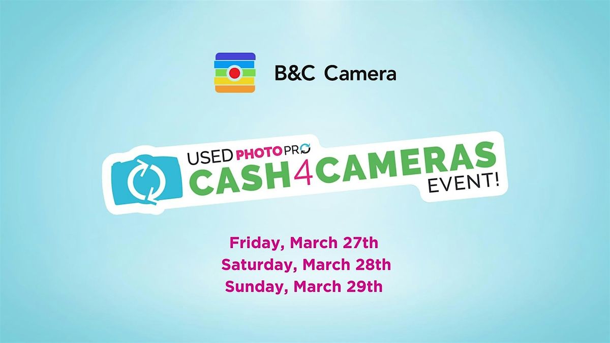 Join us at B&C Camera for our famous Cash 4 Cameras Event! Our friends at UsedPhotoPro will be in the store so bring in your old, outdated or unwanted cameras, lenses, and other photographic equipment. You can sell them or trade them in for new gear!