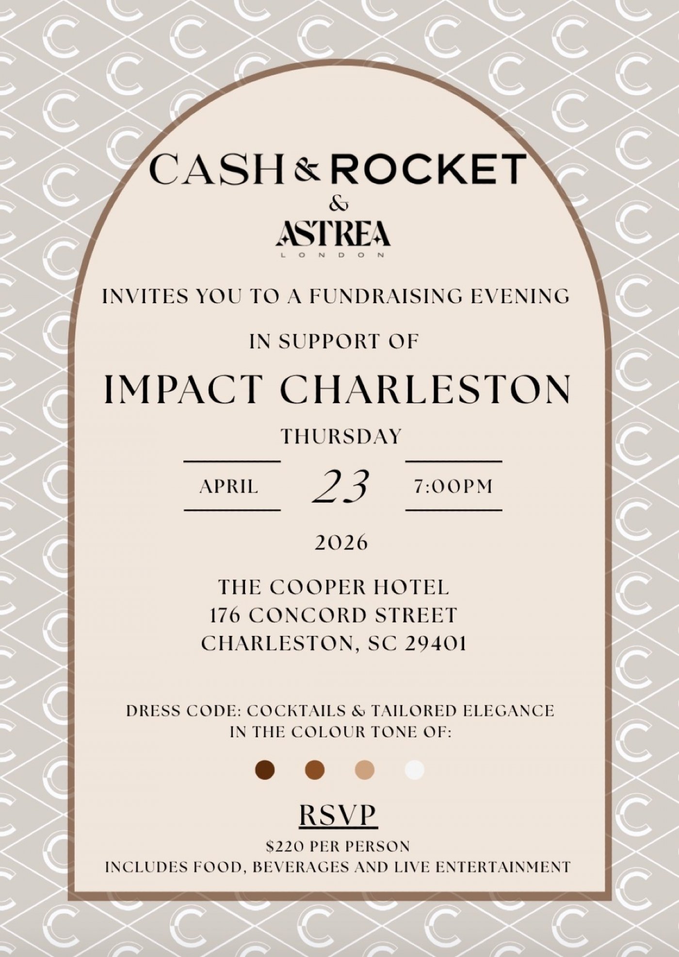 Join Cash & Rocket and ASTREA London for an elegant fundraising evening in support of Impact Charleston, an organization dedicated to expanding opportunities and exposure for youth from underserved backgrounds through mentorship, educational support, and life-enriching experiences.