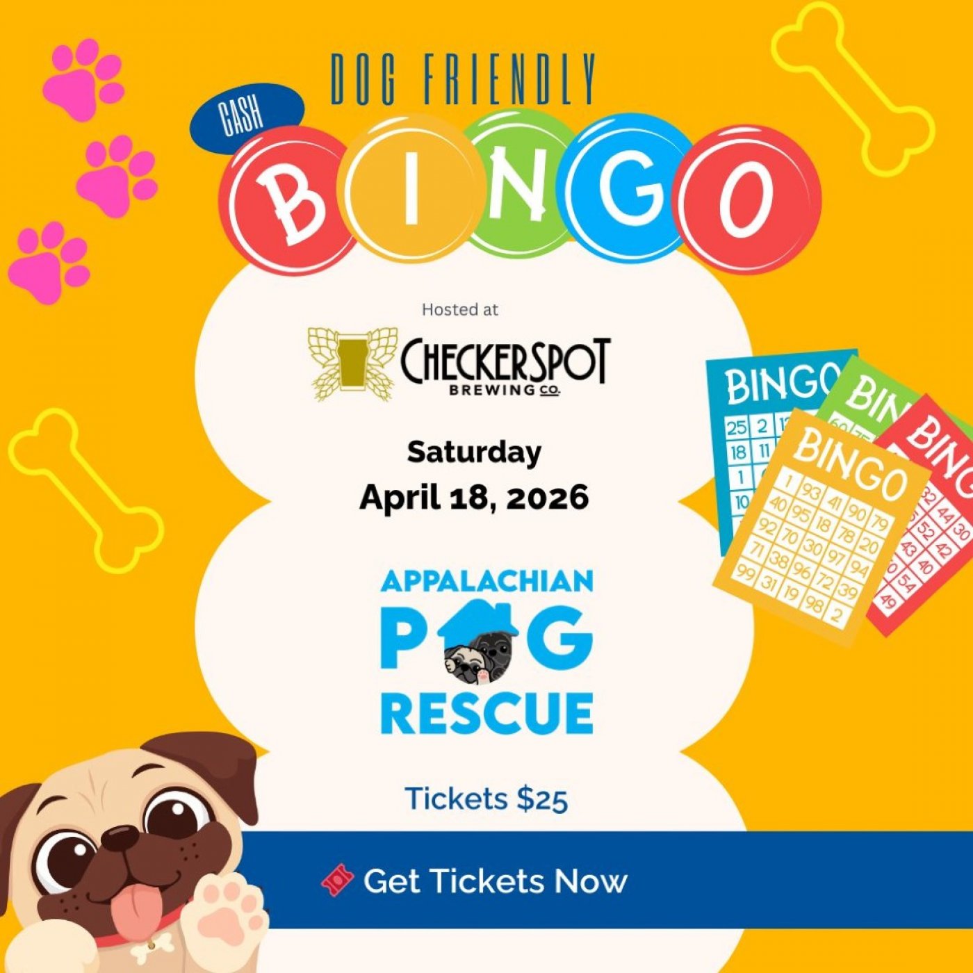 Join us for a paws-itively delightful event, Cash Bash Bingo to Benefit Appalachian Pug Rescue, presented by Appalachian Pug Rescue, Inc. 🐾