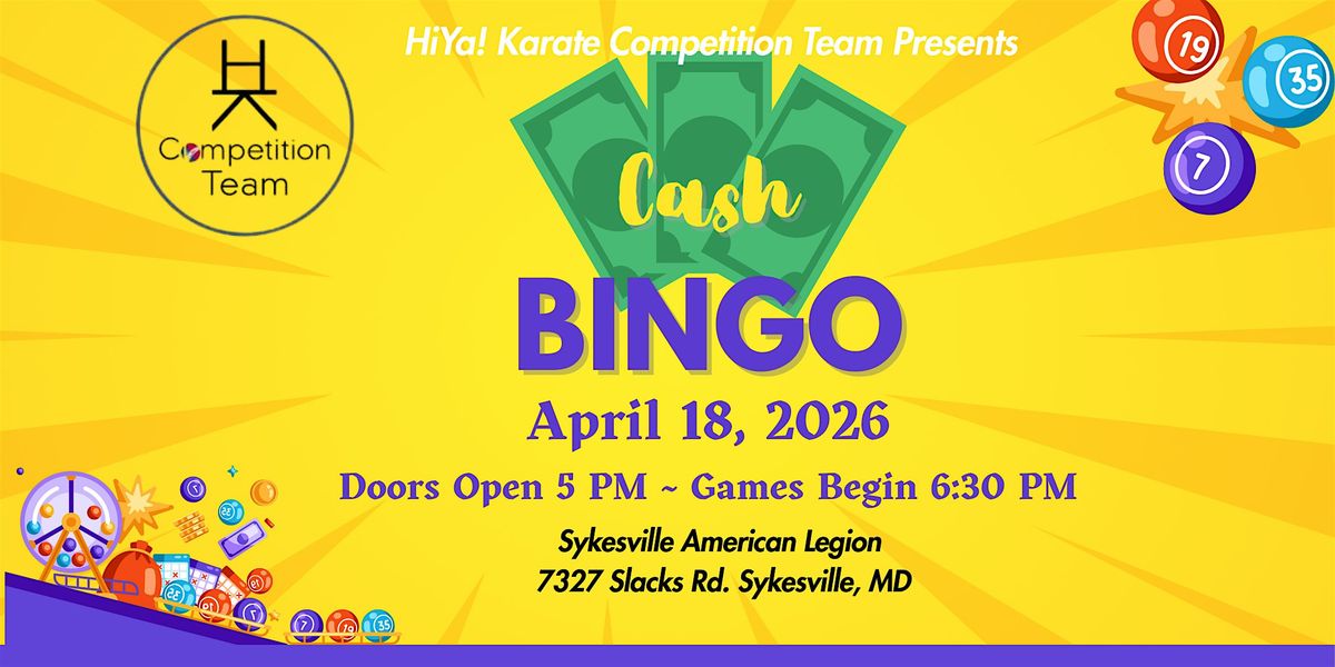 Get ready for a fun‑filled night of Cash Bingo! Join HiYa! Karate Competition Team for an exciting in‑person event packed with great energy, good company, and plenty of chances to win big.