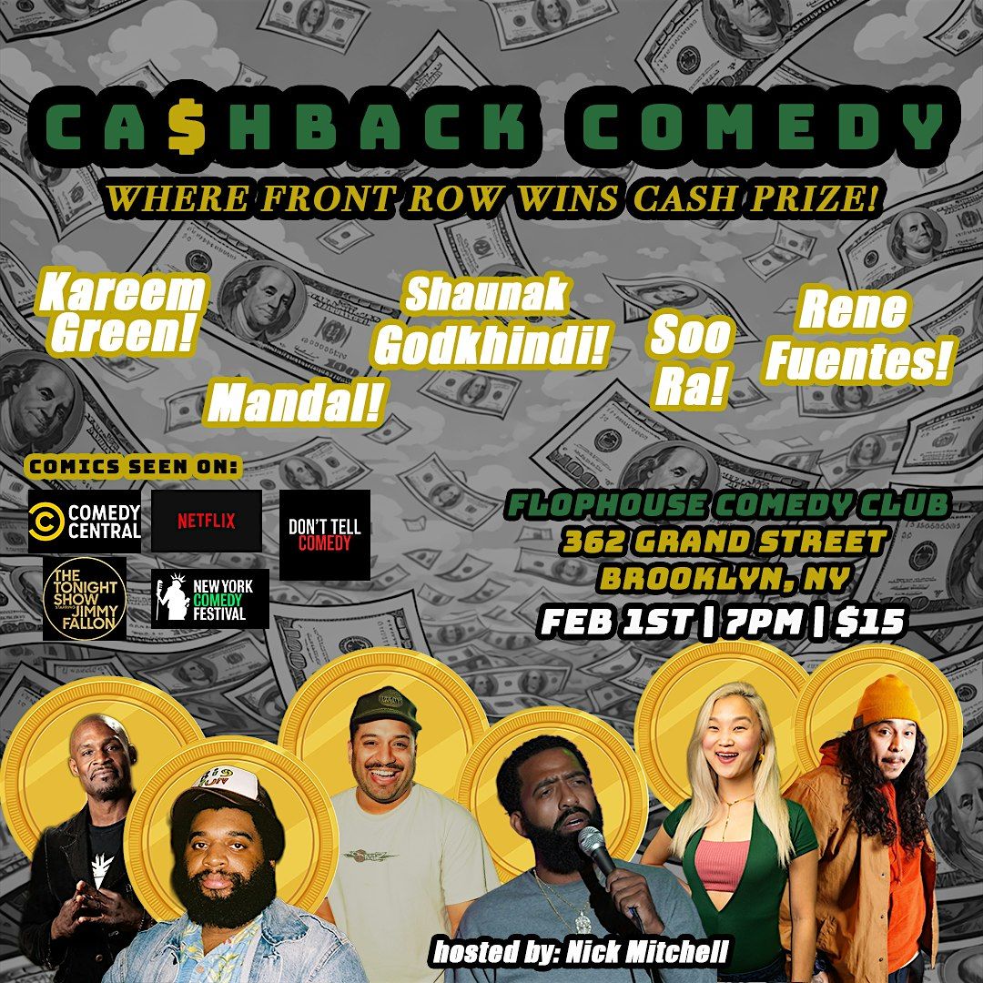 Cashback Comedy Show is a show with the best comedians around and the only show where you GET PAID to sit in the front row!