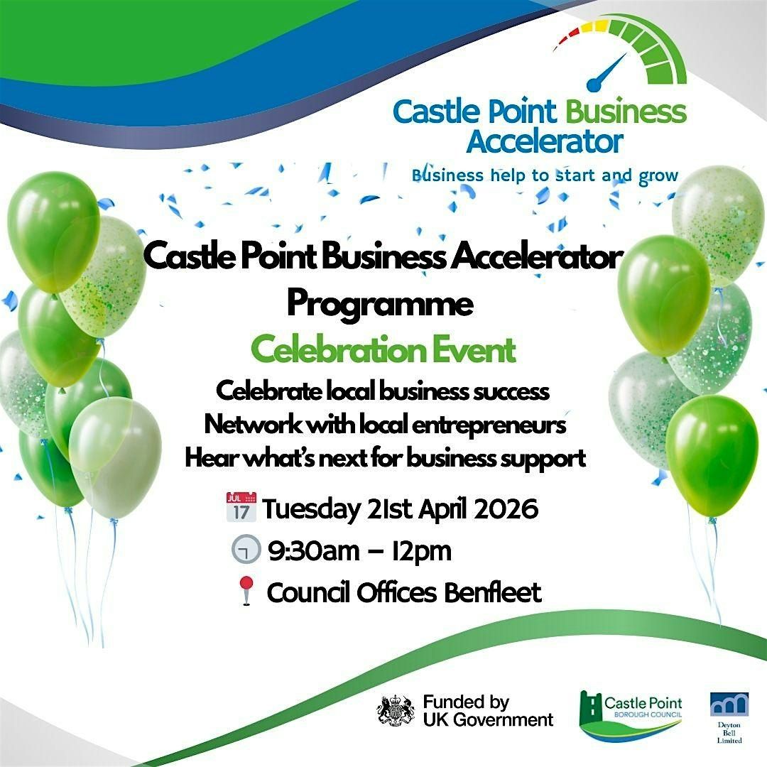 This event will bring together business owners that have benefitted from the Castle Point Business Accelerator, to celebrate the impact of the programme, as the current programme draws to a close. Since its inception in January 2024, the Accelerator has supported over 150 businesses in Castle Point, supporting the creation of new businesses and jobs in the borough.