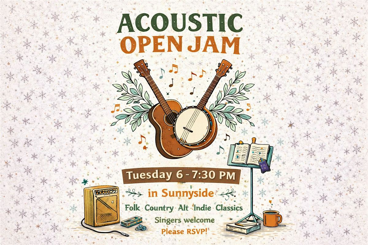 Come join a casual, welcoming acoustic jam, hosted comfortably indoors throughout the winter months. This is a low-key, community-style gathering focused on playing together, sharing songs, and having a good time, not perfection.