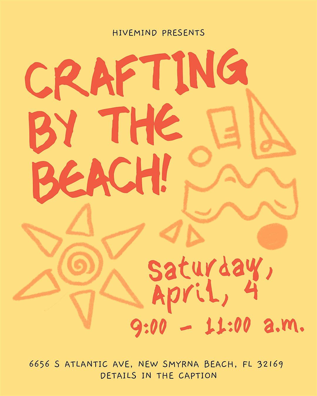 There will be materials for you to use (bring your own if you'd like!), along with the natural materials you can find at our FL beaches! Make sand art, shell collages or just sip in the sunshine while you make whatever your heart desires.