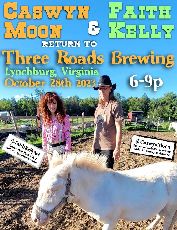 Put on your Halloween Costume and lets party! 6-9pmFaith Kelly and Caswyn Moon are just a Couple of Wanderers, two solo artists who travel together from the Catskills of New York. Exploring America one day at a time, they play to anyone, anywhere.